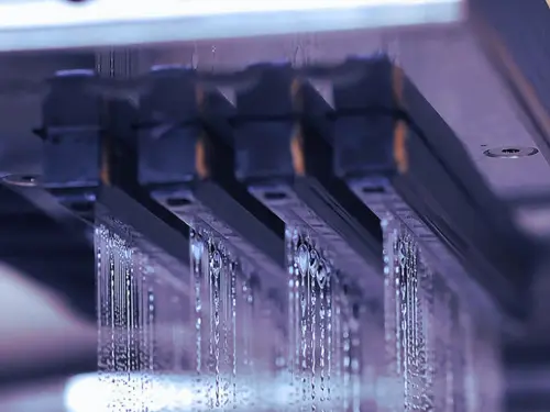 In Binder Jetting a binding agent is selectively deposited to bind the powder material to form a 3D part. Binder jetting can be used to print various materials, including metals, sands, and ceramics. The process is most suitable for high-volume and complex components.